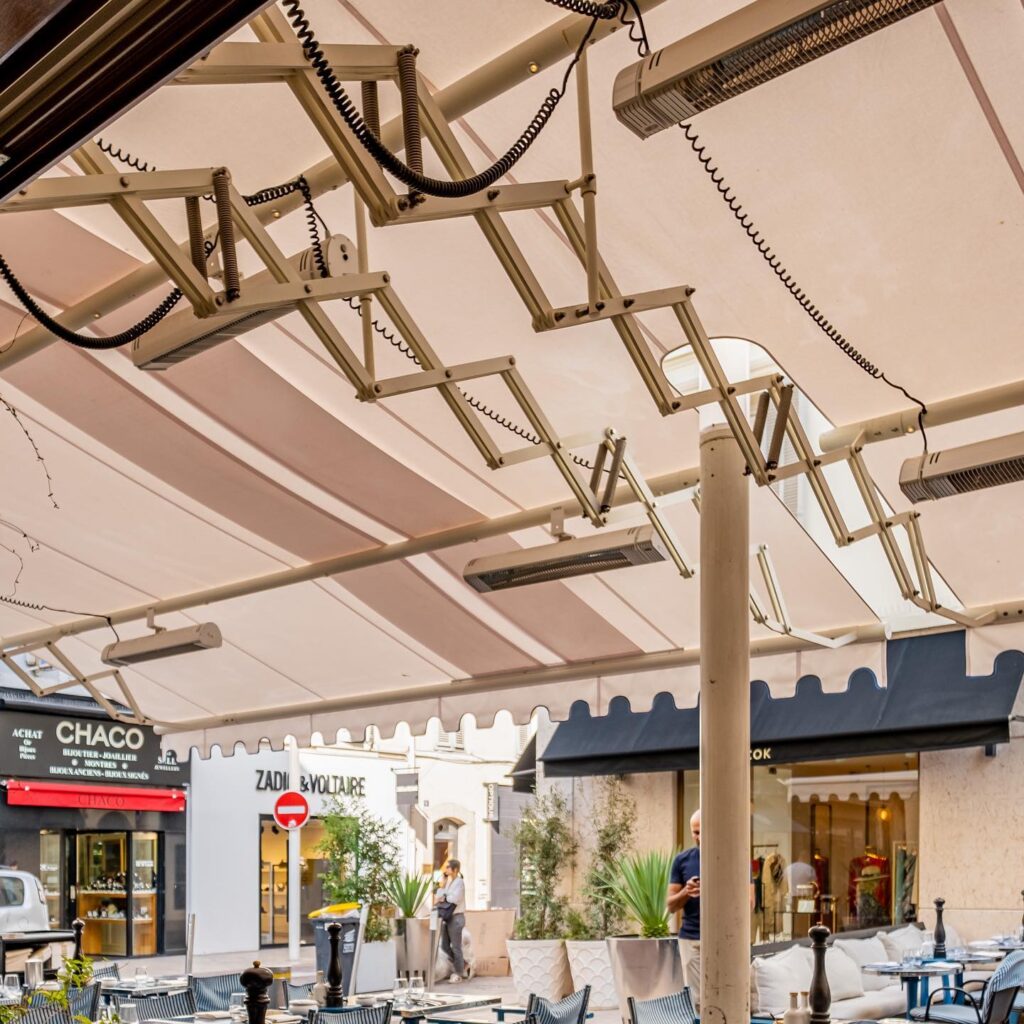 Zwei XL-Scherenarmmarkisen