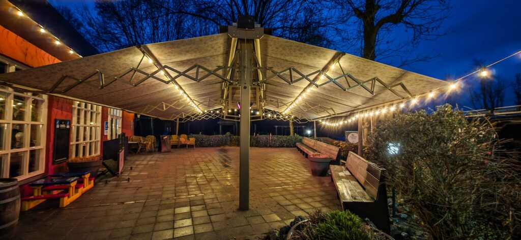 14 Meter breit auf beiden Seiten mit einem Vorsprung von 4 Metern