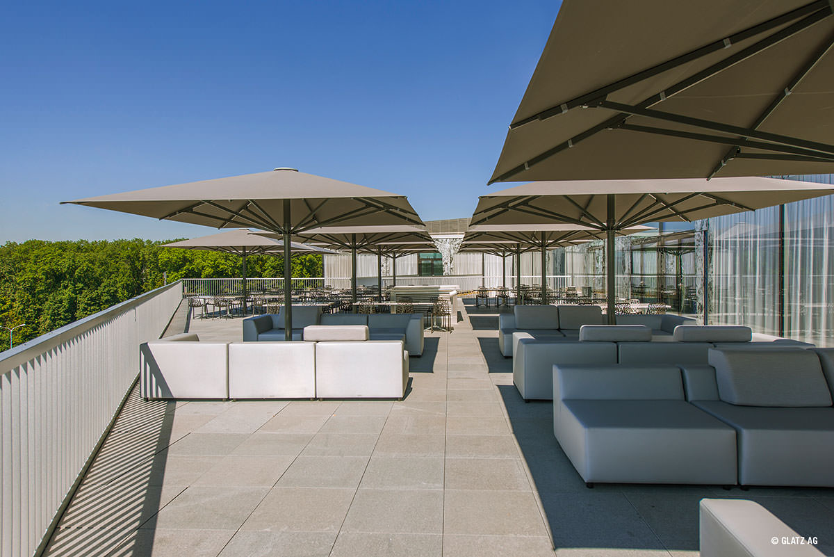 Freitragender Sonnenschirm für Gastronomieterrassen